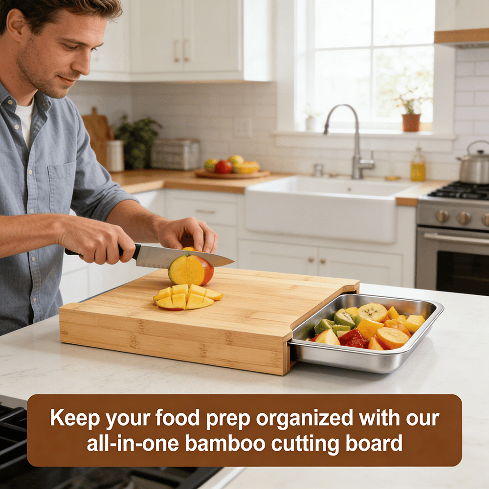🌿 Organic Bamboo Cutting Board with Sliding Drawers