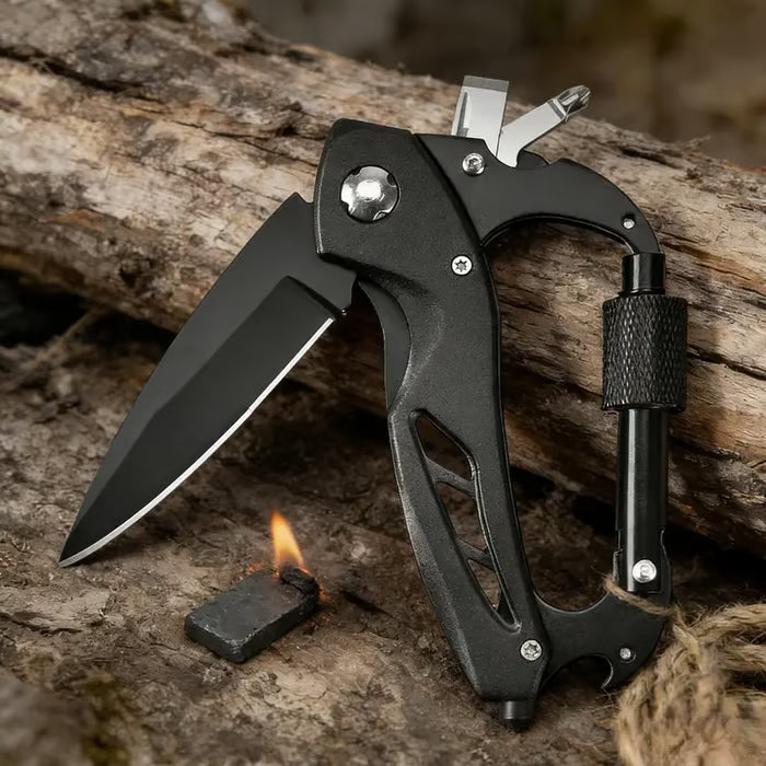 All-in-One Carabiner Multi Tool – Compact EDC Keychain with Knife & Screwdriver