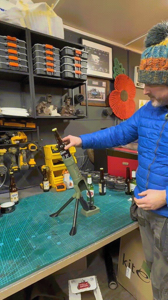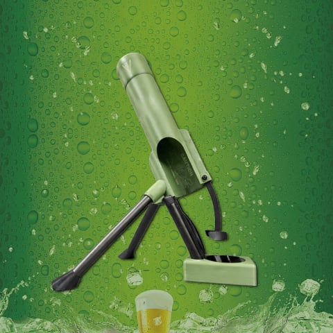 Modelled on the real-life operation of artillery, this allows you to slide the beer bottle into the barrel just as you would load a shell, kicking off a drinking ritual brimming with ceremony and power.