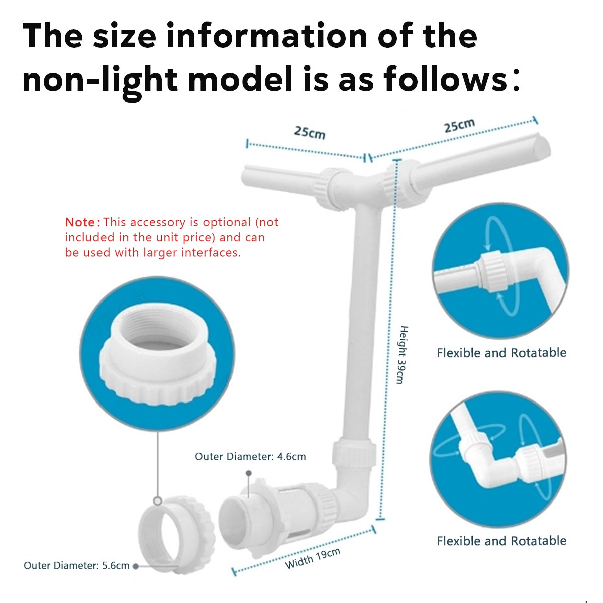 Easy Installation and Operation: Our pool fountain sprayer is designed for easy installation and user-friendly operation. With its simple setup, you can quickly enjoy the benefits of a refreshing mist and captivating fountain in your pool.
