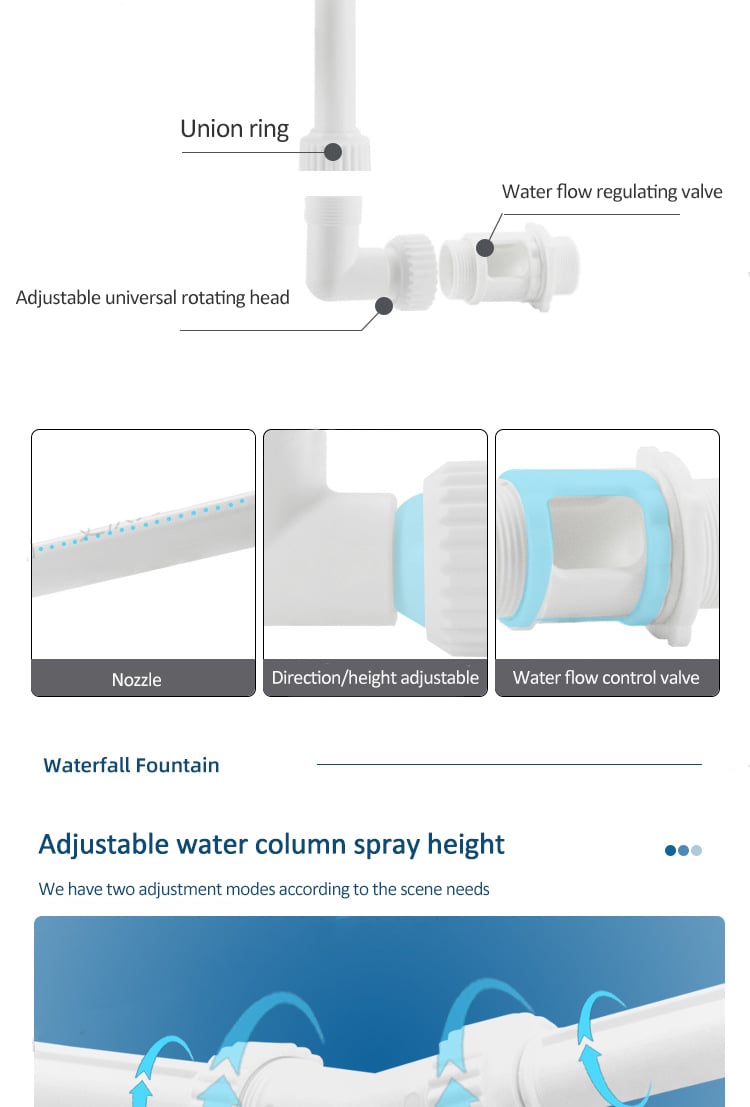 Adjustable Water Flow: The fountain sprayer offers adjustable water flow, allowing you to customize the height and direction of the fountain. Create a gentle cascade of water or a more dramatic water show, depending on your preference and mood.
