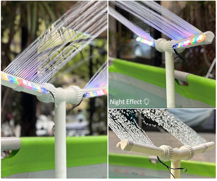 Cooling Mist Effect: The built-in cooling mist function releases a fine mist that lowers the ambient temperature, providing a refreshing and comfortable poolside experience. Stay cool and beat the summer heat with our pool cooling fountain sprayer.