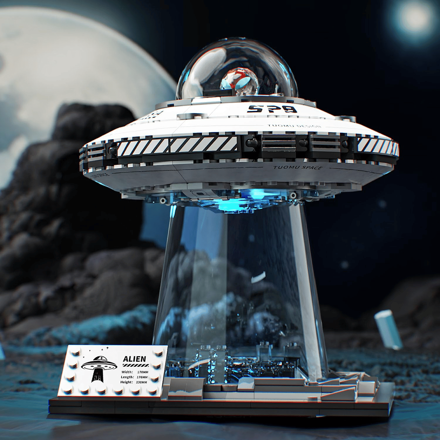 Illuminated Design: The base of the UFO features a built-in light that makes the transparent sections glow, mimicking the iconic "teleportation" effect seen in movies. It’s not just a cool display – it can even double as a nightlight for young space explorers.