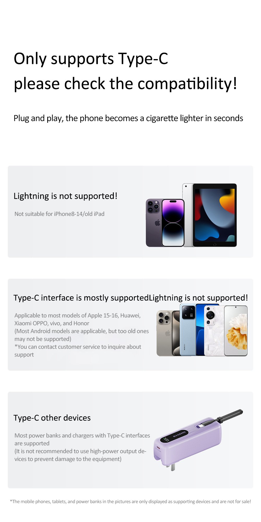 Wide Compatibility: Works with most Type-C devices. Instant ignition with a single press.